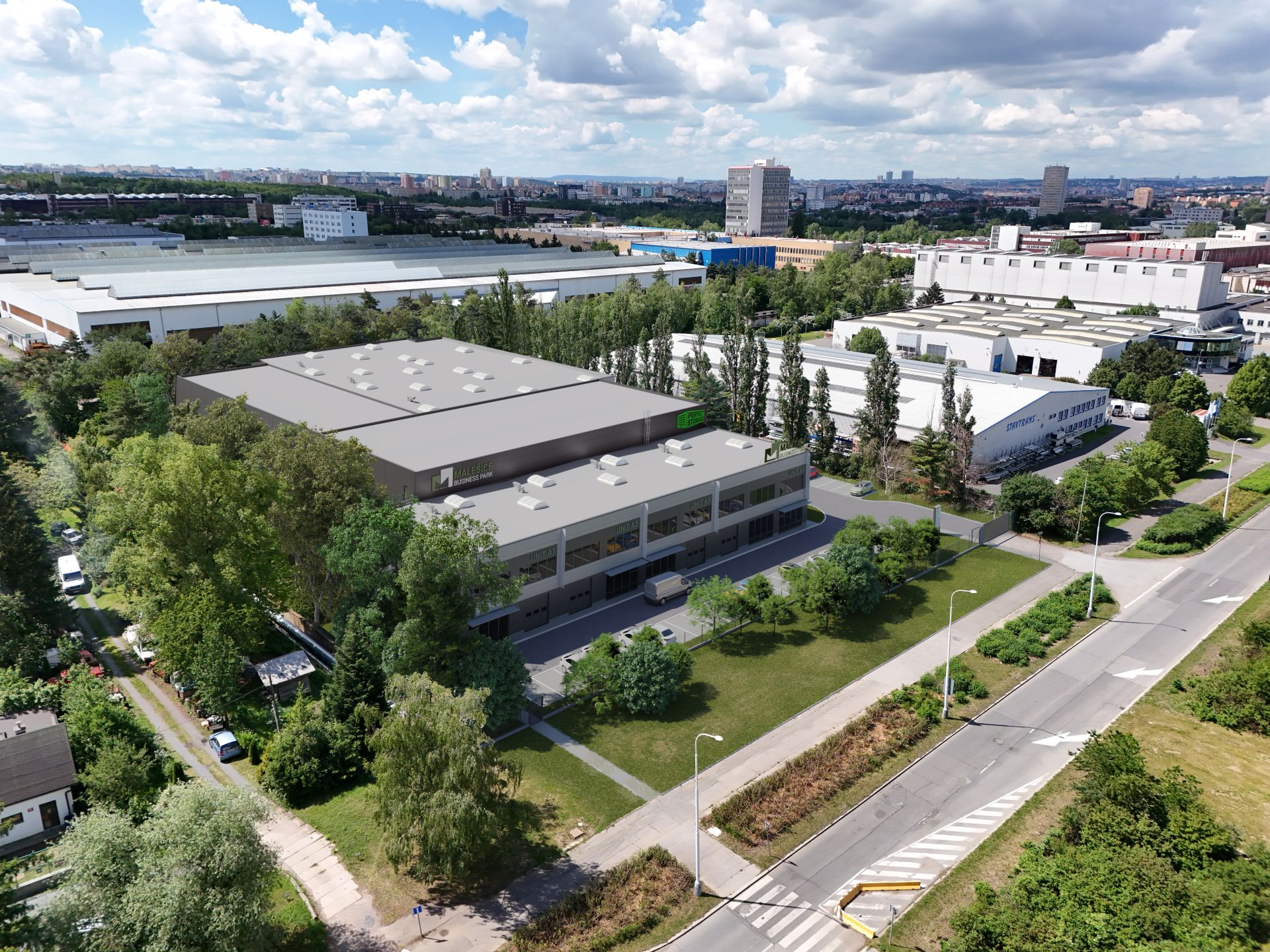 Nově vznikající komerční areál nabízí 10 000 m² moderních variabilních skladových a výrobních prostor v kombinaci s kancelářským zázemím na míru.